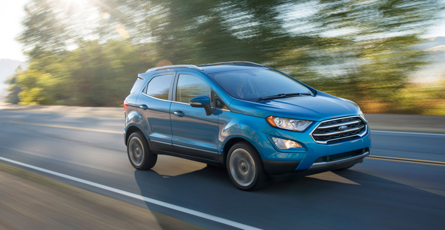 Audiophiles will appreciate the available B&O PLAY Premium Audio System by HARMAN. Award-winning 1.0-liter EcoBoost three-cylinder with Auto Start-Stop is standard with six-speed automatic transmission; available 2.0-liter Ti-VCT four-cylinder with Auto Start-Stop is packaged with all-wheel drive. Standard safety features for the all-new EcoSport include AdvanceTrac with Roll Stability Control, Safety Canopy side-air curtain technology for first and second rows, side thorax airbags for rear passengers and SOS Post-Crash Alert System.