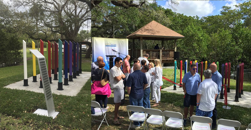 Pioneers of the LGBTQ movement are featured in a plaque that stands alongside the artwork installation, serving as a time-line of Miami-Dade County’s Lesbian, Gay, Bisexual, Trans and Queer history. (Photo: Courtesy)
